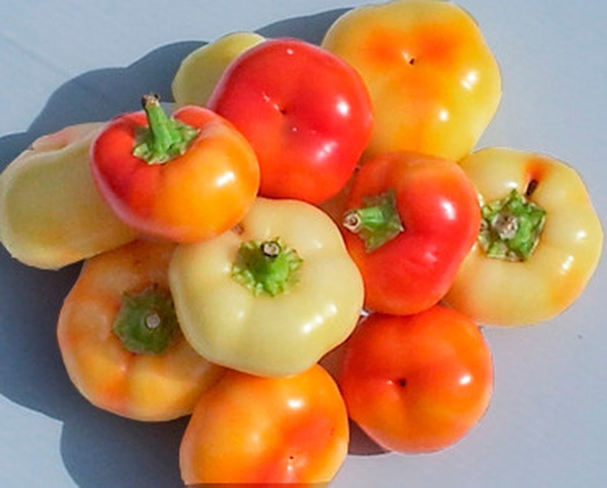 Перец «Edesalma» буквально усыпан желто-оранжевыми плодами ,которые позже становятся красными. Очень нравится деткам .Необычный ,урожайный и неприхотливый сорт. Высота 50-60см с множеством плодов весом 60-80гр,которым требуется подвязка.