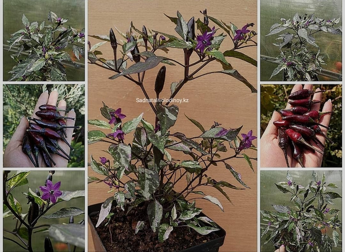 Перец пестролистный коленкор, карликовый сорт,с очень оригинальной расцветкой листвы и плодов. Высота около 20–