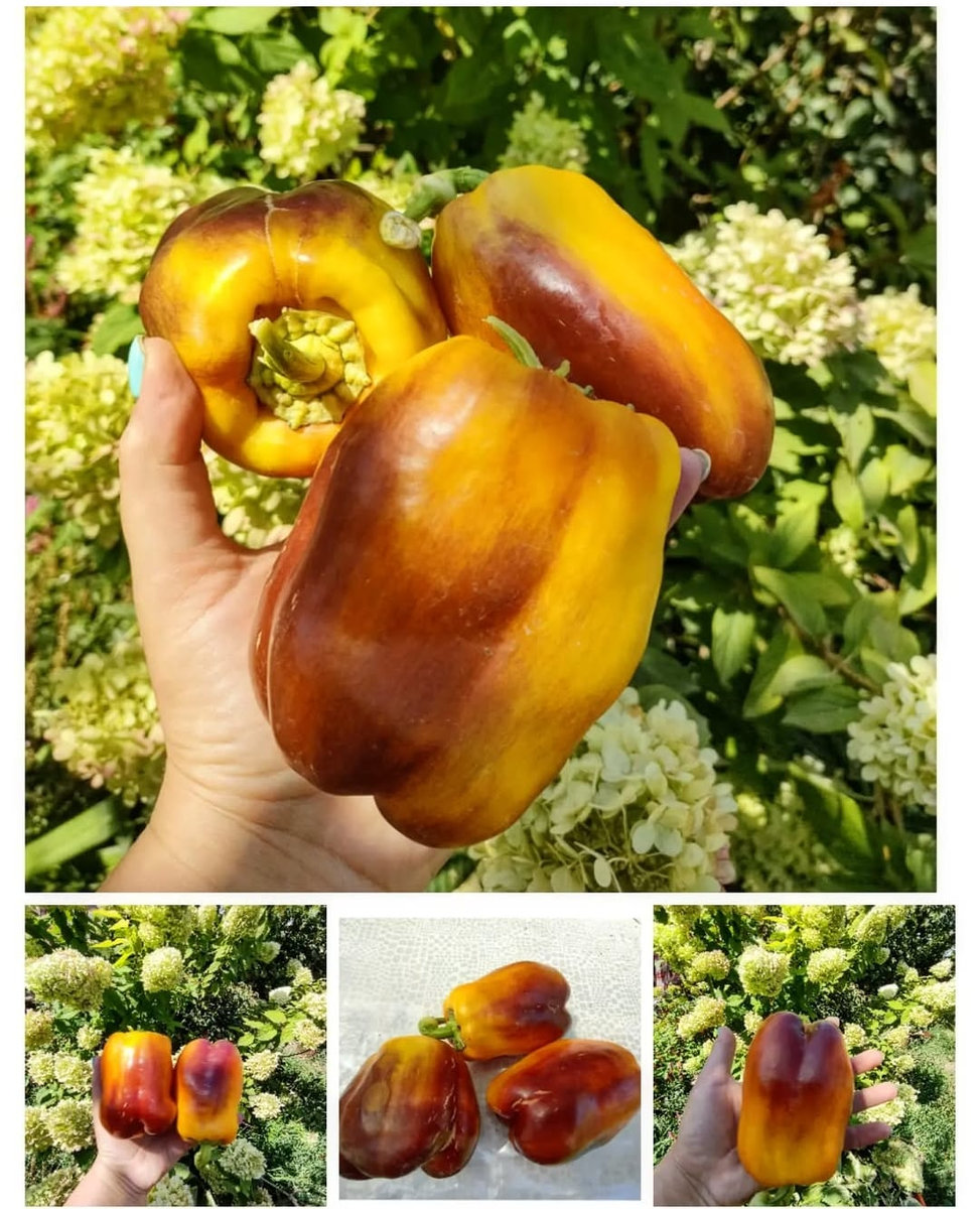 Очень красивый и вкусный перец. Урожайный ! Этот сорт будет украшением вашей коллекции. Выращивала в открытом грунте.Требует подвязки .Высота около 50см ,вес 150-200гр со средней толщиной стенок.