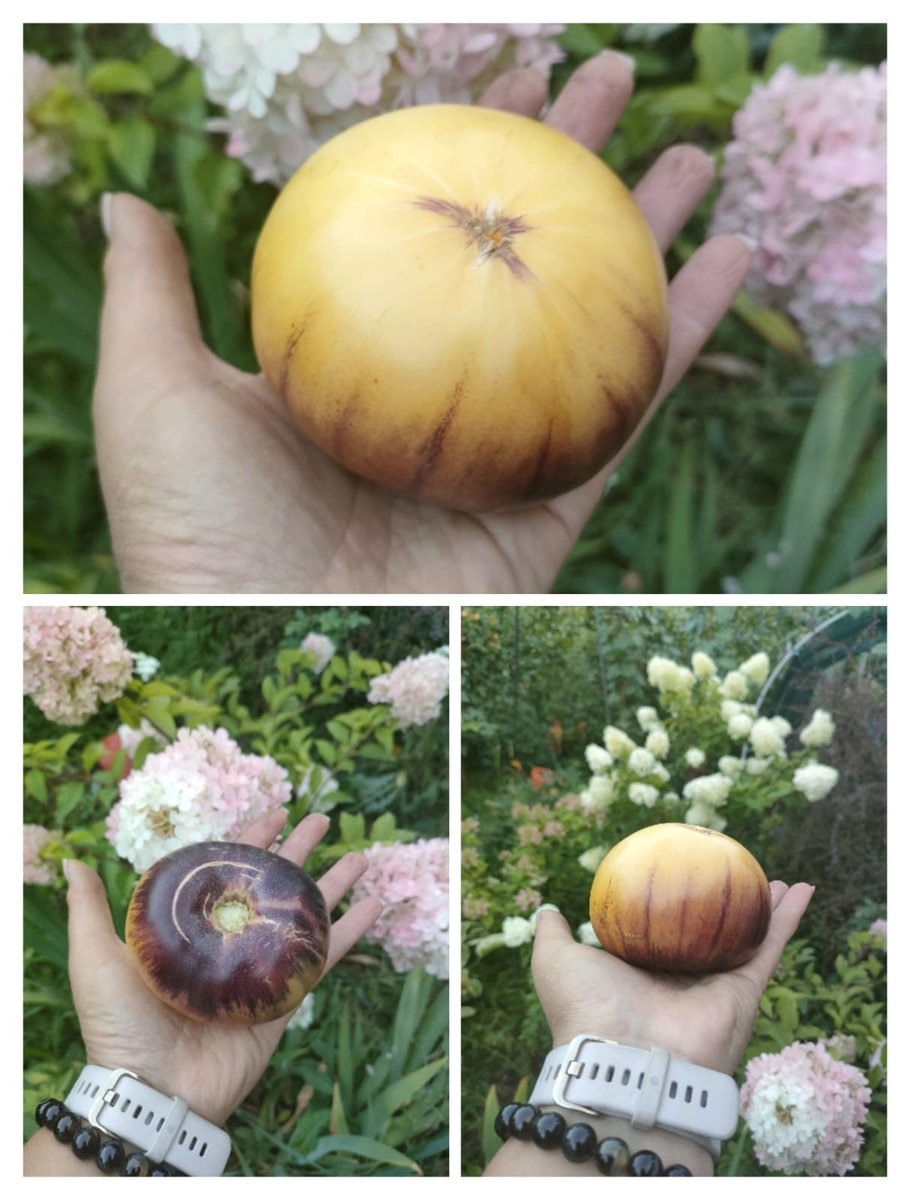 Томат Сарт Ролуаз (Sart Roloise) Лимонный красавчик с антоциановыми плечами. высокорослый,среднеспелый,с массой плодов около 200-250гр.