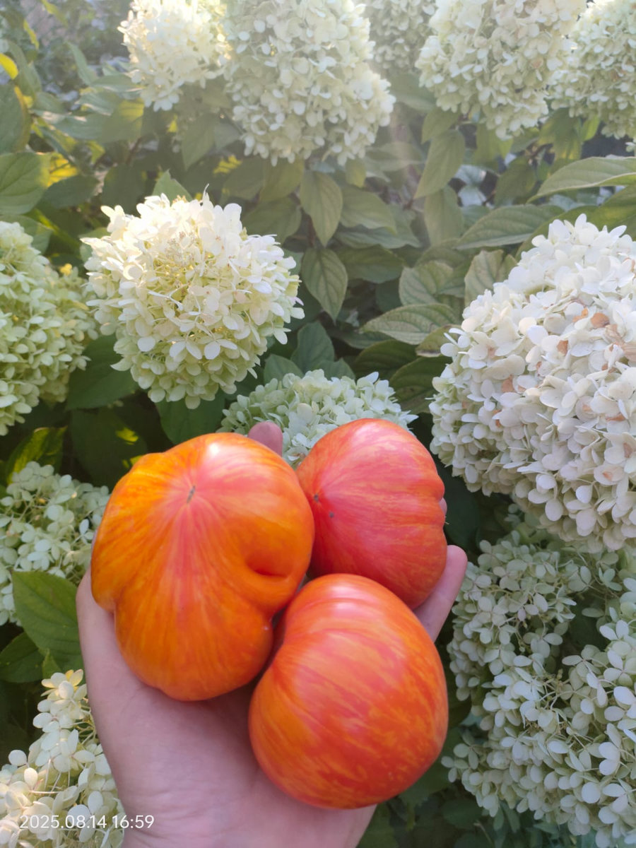 Томат Вечерний Алматы(Казахстан,В.Алифиров) Среднеспелый,индет. Очень красивые плоды красного цвета ,с золотыми полосами .