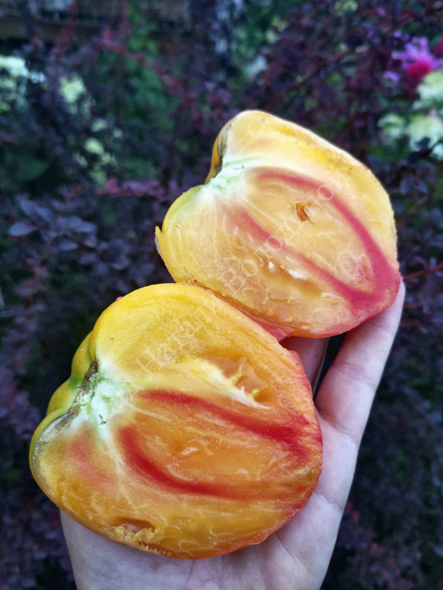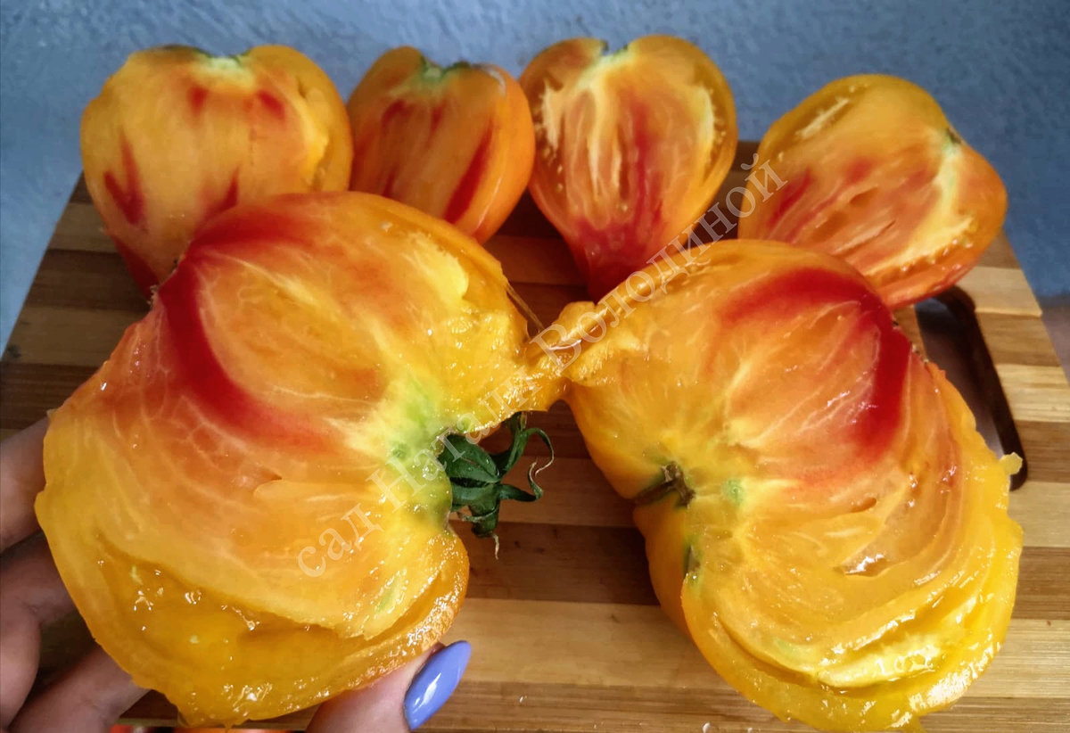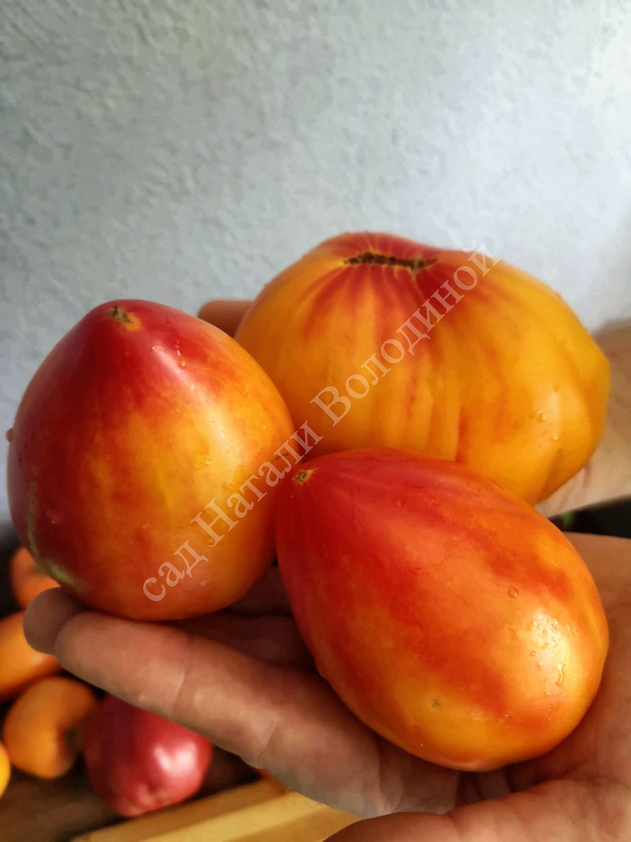 Среднеспелый,индетерминантный би-колор Казахстанского селекционера В.Алифирова. Очень красивый и вкусный. Выращивала в открытом грунте. Форма плодов разная,чаще сердцевидной формы. В целом сорт понравился.
