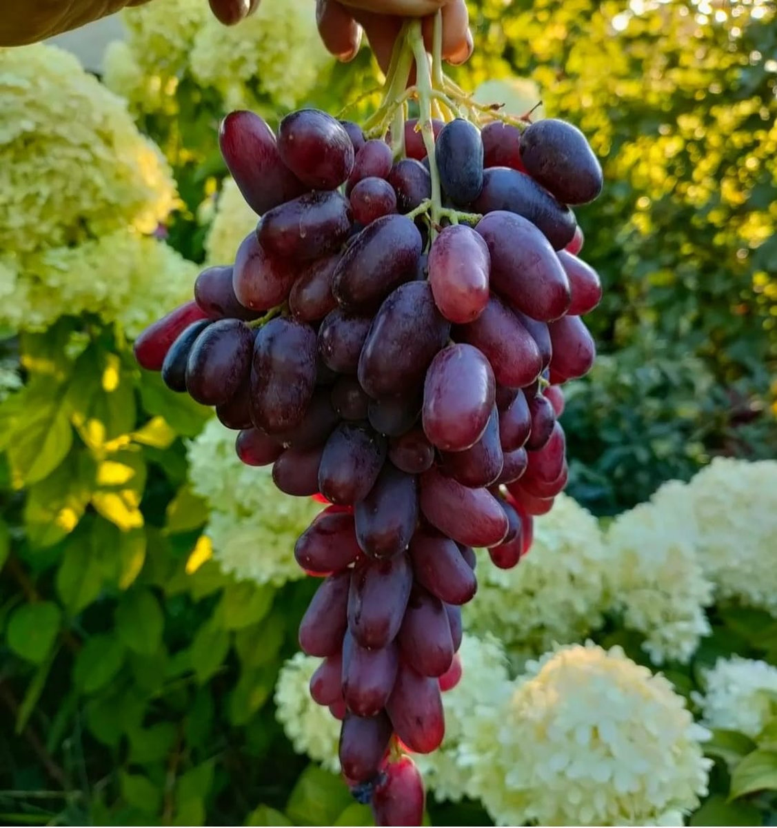 Гибридная форма очень раннего срока созревания — 95-105 дней. Ягода крупная, пальчиковая, с заостренным кончиком, темно-красного цвета, весом 8-12 гр. Вкус с мускатным ароматом. Мякоть плотная и хрустящая с тонкой кожицей и одним-двумя семенем внутри. Морозоустойчивость — 23°С.